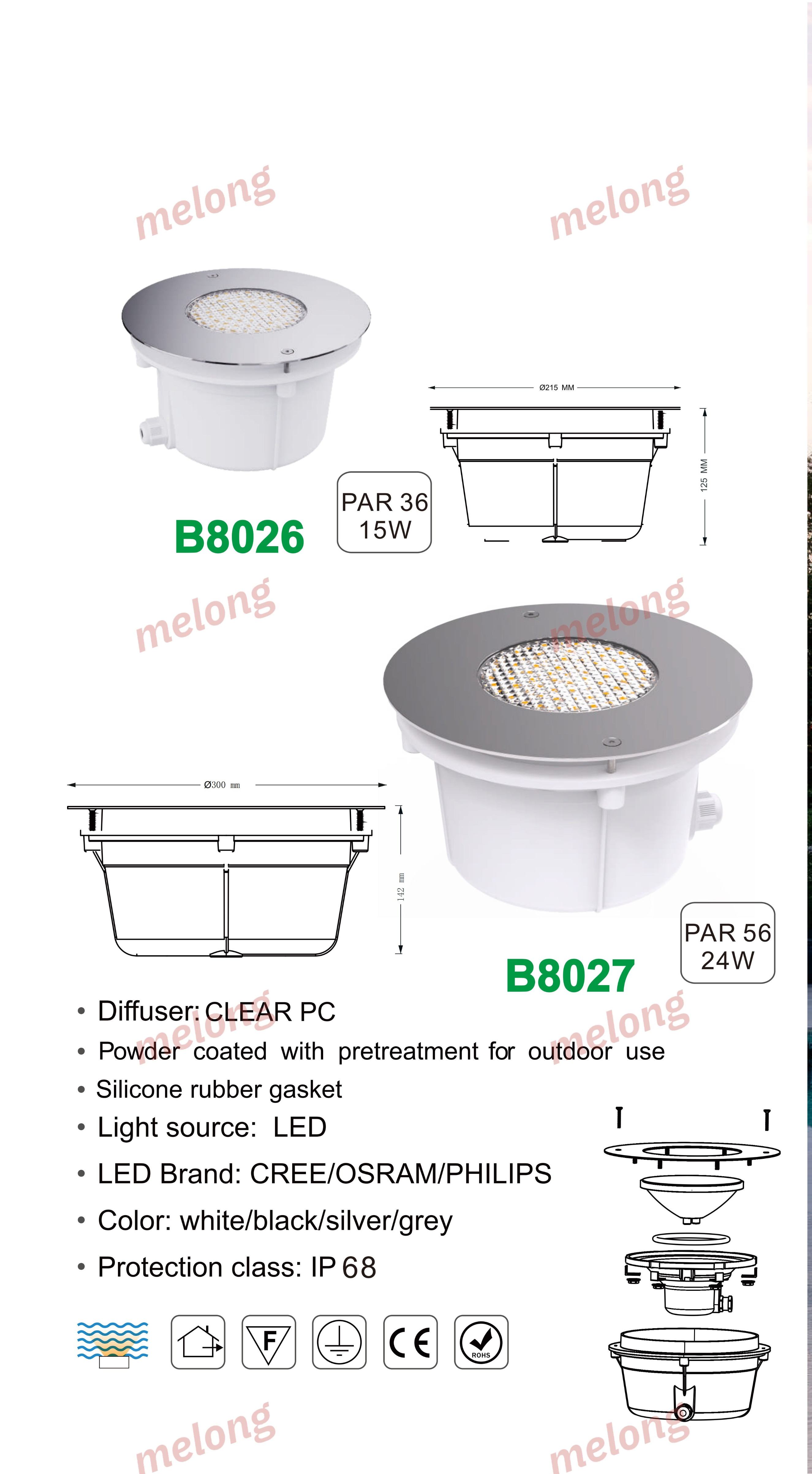 Item:B8026 Material: Die-cast Aluminum Light Source: LED Waterproof: IP65 Voltage: 110–240V Color Temperature: 3000K / 4000K / 6000K Suitable for Garden/Villa/Courtyard/Pathway